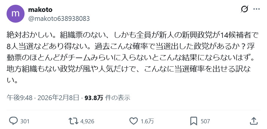 2026年 衆議院選挙に見る選挙結果の異常さ。不正選挙を疑う声がさらに激増。この国は「最初から選挙なんて行われていない」出来レースの可能性大